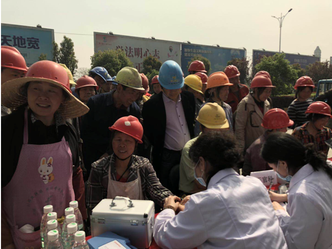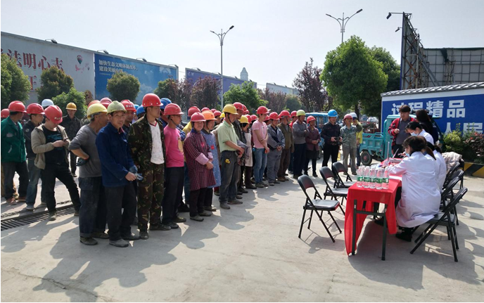 2019年4月17日上午9時,黃山建工集團承建的徽州碧桂園德源項目工程東大門,人聲鼎沸、歡聲笑語,每個人臉上都洋溢著幸福的笑容,他們排著隊,有組織、有秩序地參加由碧桂園德源工程施工項目部組織的“關愛健康、免費體檢”活動。此次體檢活動邀請了屯溪同仁門診部的四名醫生,分科體檢,對每位職工的心率、血壓、外科、口腔等做了細致的檢查,并做好體檢記錄,同時對工友們關心的日常生活問題、常識做了解答和溫馨提示,此次項目部參加體檢人員惠及95名。本次活動是為了增強員工關懷,保障員工身體健康,營造”平安、和諧、幸福、美麗”的示范工地。