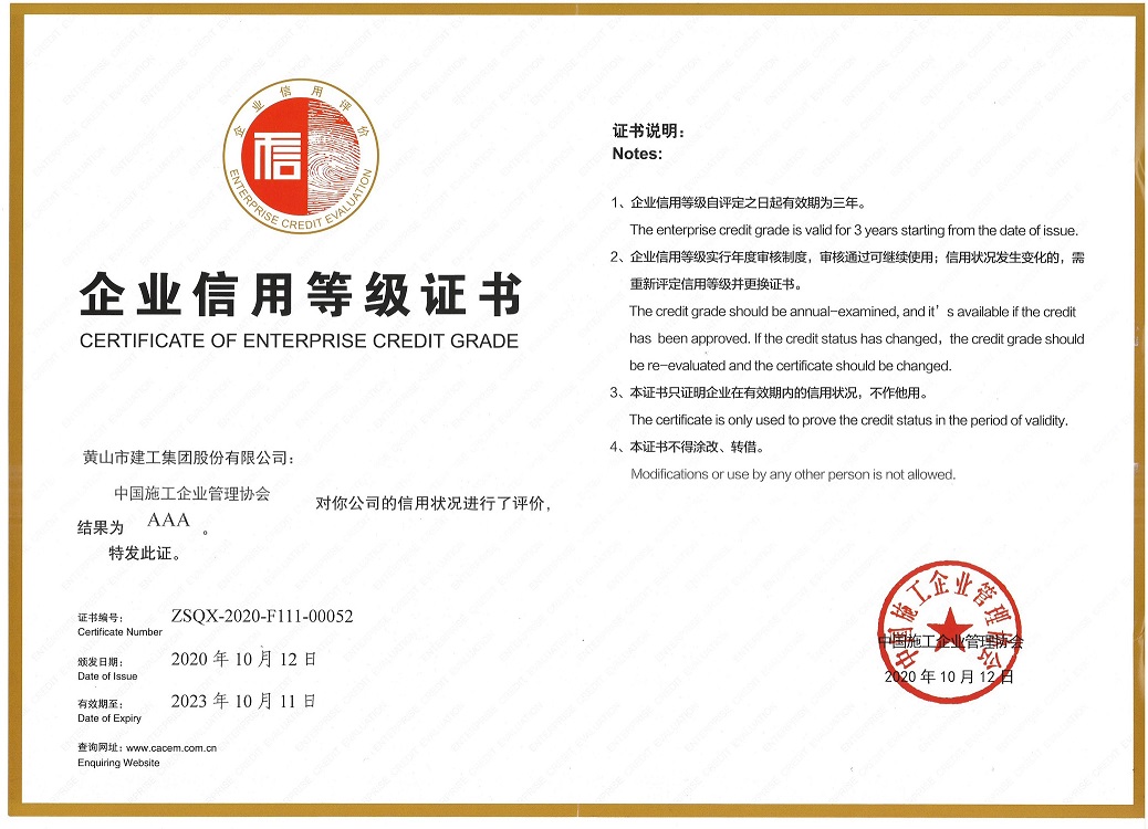 榮譽的獲得,是對黃山建工集團近年來信用體系建設工作的充分肯定,公司將進一步規范管理,增強誠信意識,守信踐諾,為工程建設行業的持續健康發展做出新貢獻。