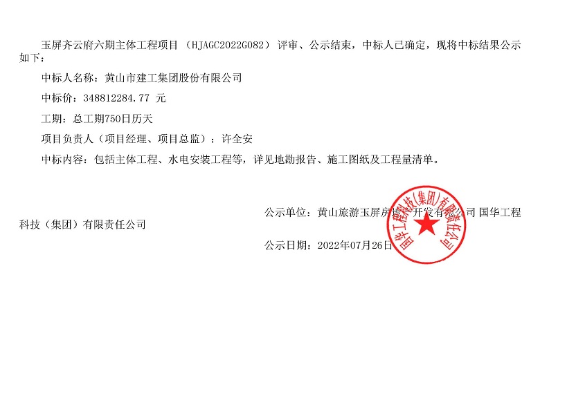 7月22日公司經(jīng)營(yíng)一線再傳捷報(bào),一舉中標(biāo)了至今為止我公司史上中標(biāo)的最大單位建筑項(xiàng)目--玉屏齊云府六期主體工程,總建筑面積約15.1萬平方米,總造價(jià)348812284.77 元,為公司贏得了良好的社會(huì)效益。