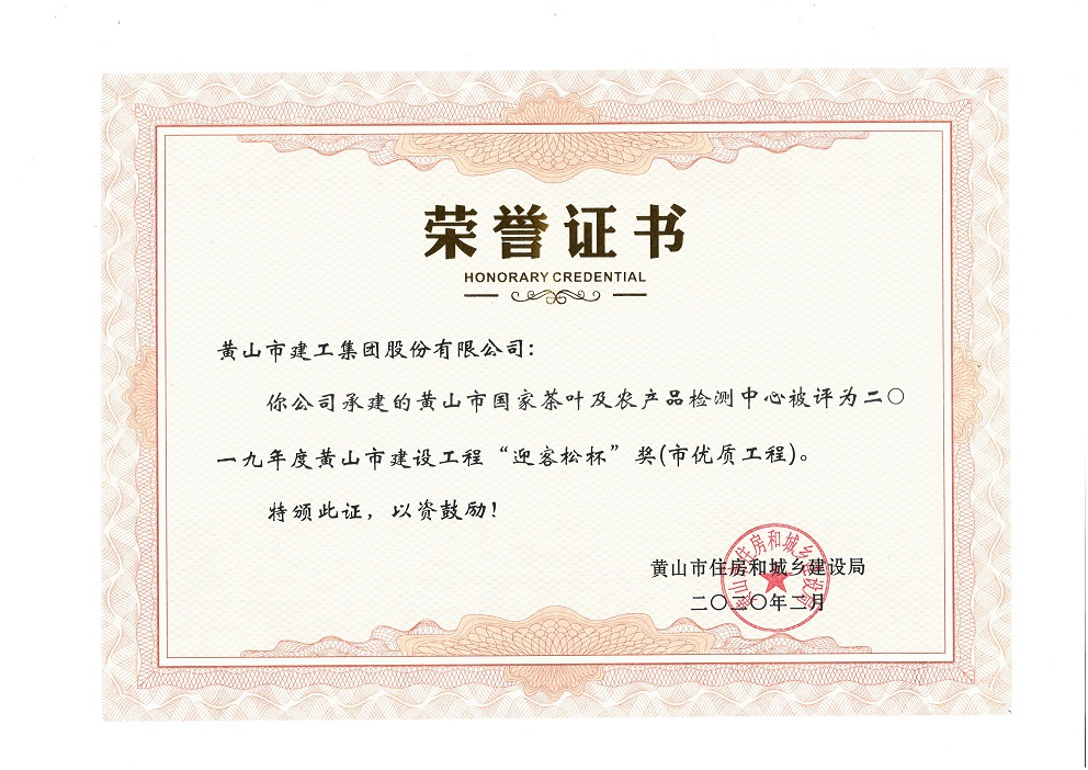 2020年度黃山市建設(shè)工程優(yōu)質(zhì)工程獎(jiǎng)